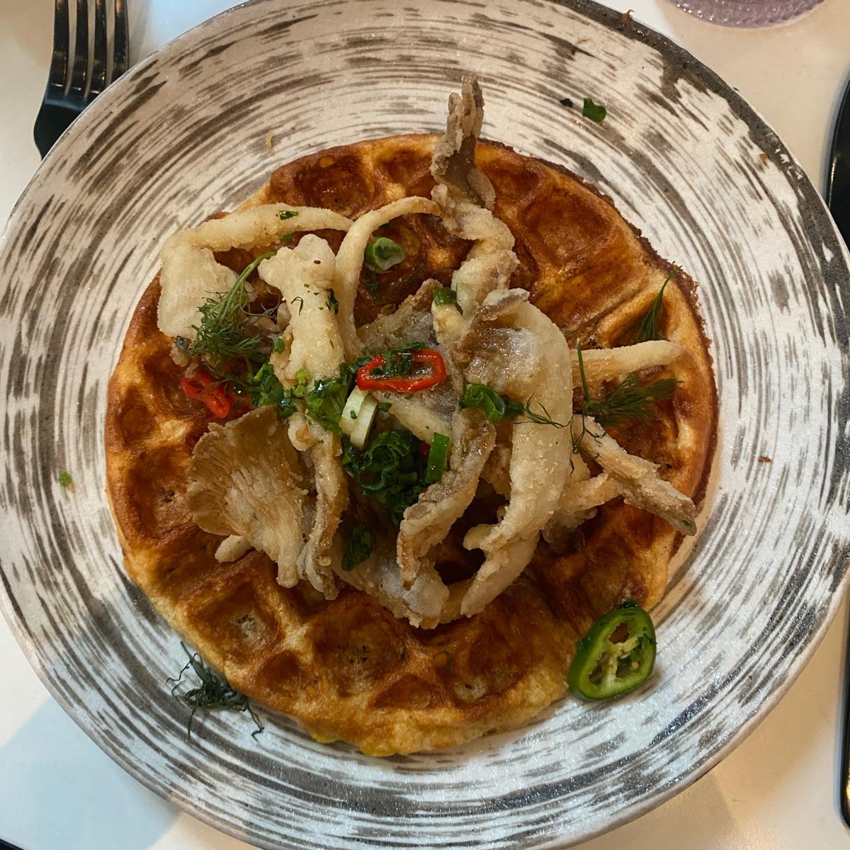 The waffle was actually made of corn (cornbread waffle to be more precise) making it perfect for this dish!! All the ingredients belonged together!!
