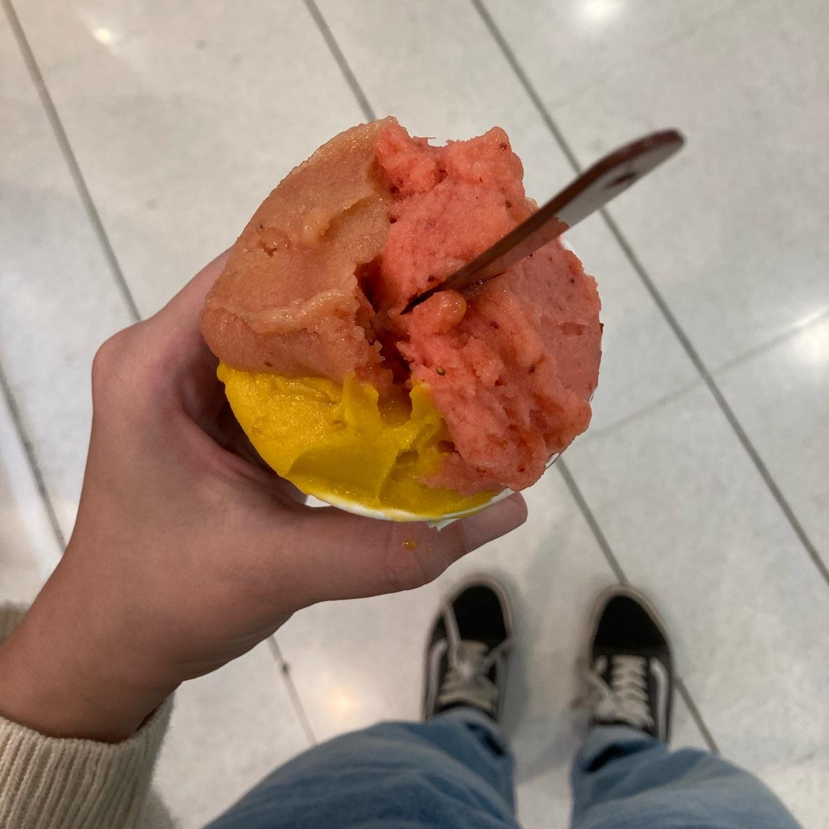 Pedi três sabores de frutas da Bacio. Todos a base d’água. Já conhecia o de morango e o de chocolate, mas ainda não tinha provado o de goiaba, nem o de manga 🥭 e me surpreendi! Adorei!