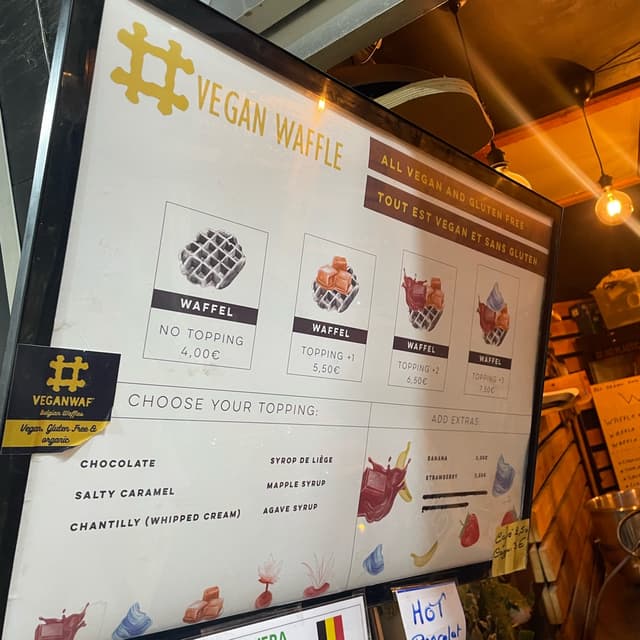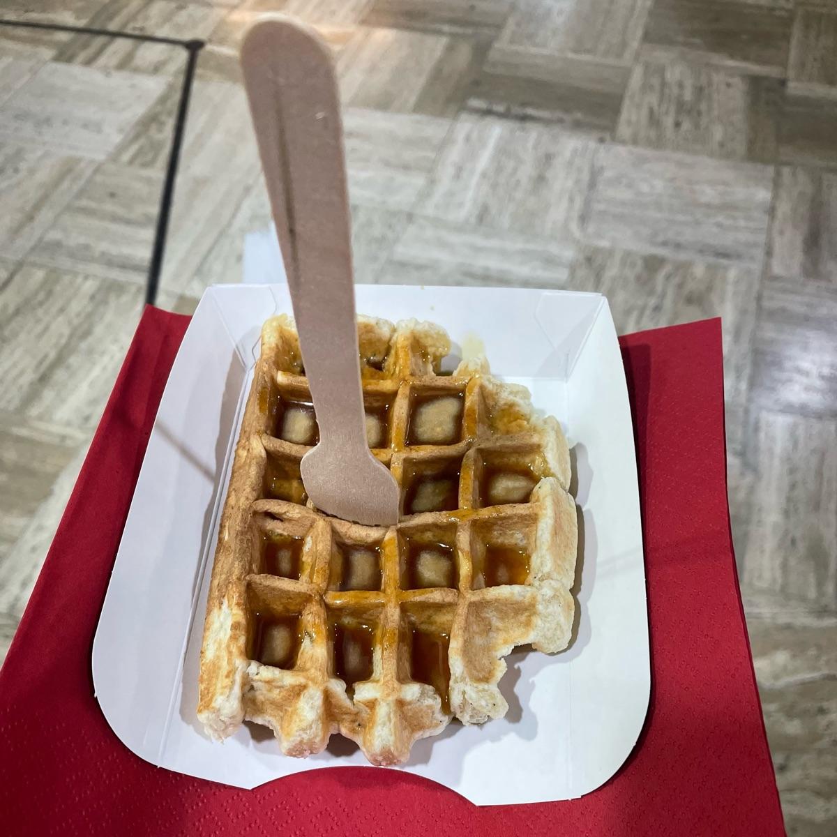 This shop makes vegan and #glutenfree waffles and I believe is one of the best places in Belgium to secure one. The shop is in a covered clothing market with no seating so not the best ambiance. Nice waffle but the #caramel sauce was super thin, almost like a syrup. #waffles #veganinbrussels