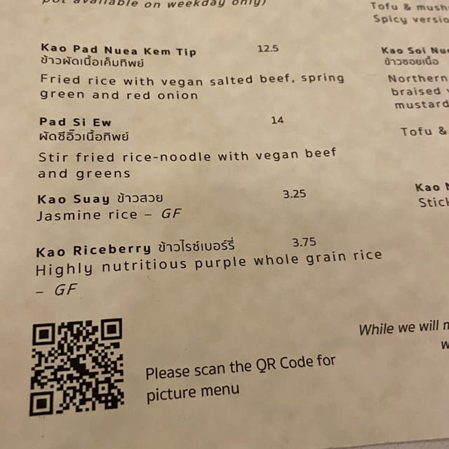 Printed +online menu in English and Thai. Step at entrance. Bathrooms up a flight of stairs. #thai #veganlondon #topveganeats #topveganplaces #fullyvegan