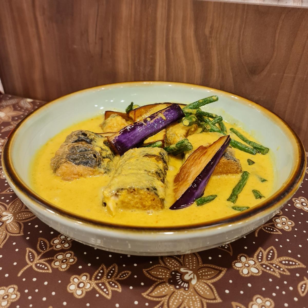 Slabs of #veganfish and deepfried #eggplant drenched in #indonesian curry (very #coconutmilk forward). Clearly a sharing platter.. the tum tum died after inhaling most of what's #soy up there. It turned out to be a rather jelak affair; I likey #curry savoury, this was pretty much a #dessert item 🤔