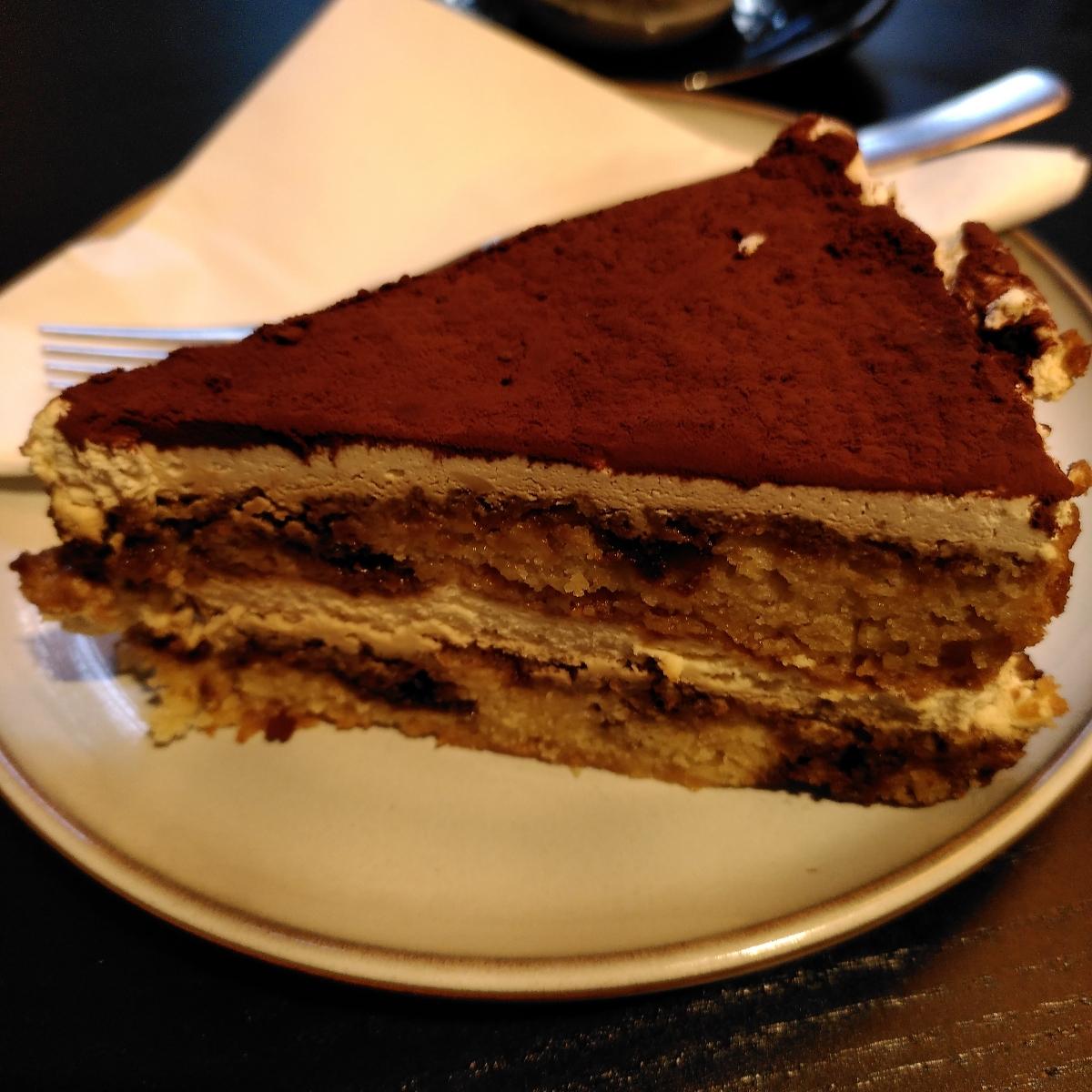 Vegan tiramisu as a cake. It was very tasty ! I could order it again