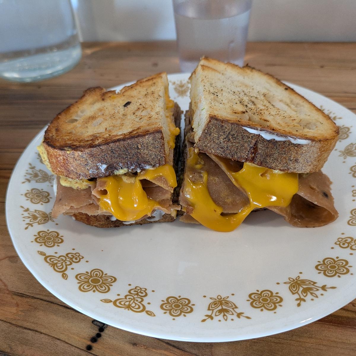 Another great sandwich, especially if you love #mustard. It's not my favorite just because I don't love mustard, but still pretty good. Smoked ham, sweet and spicy pickles, provolone, house mayo, and brown mustard. The #veganham is thinly sliced and has a great flavor. A #greatvalue at $11