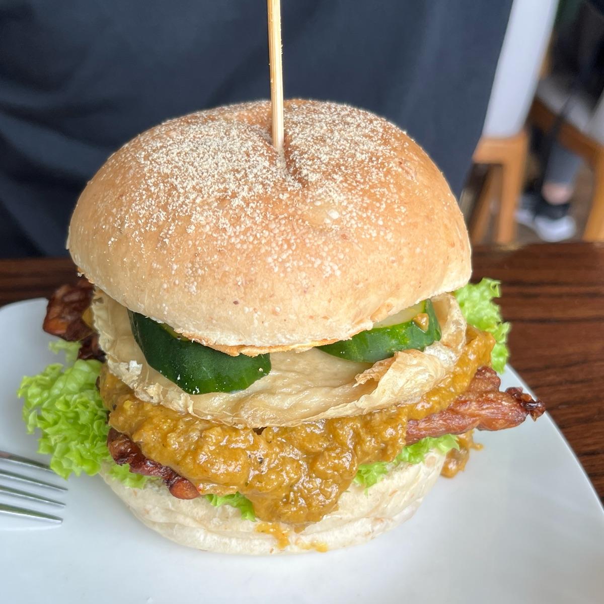The rendang was very nice with bits of mushrooms. Very tasty. However, today's plant egg had a very weird texture like very konjac-y/membrane-like. Not sure what caused that, maybe the cooking time or something. The burger also had some crisps in it which was not very nice because they softened after a while.