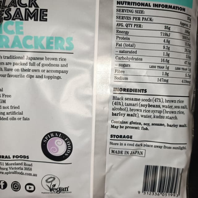 Bought these in a CBD health food store for $4.85, which is the cheapest I've seen a pack of these selling for 😅. From the same parent/company who do Bonsoy, interestingly enough. Look at the darkness and profusion of black sesame seeds though! No added oil, oven baked, superb crunch and sesame flavour - definitely worth it. #blacksesame #crackers #sesame