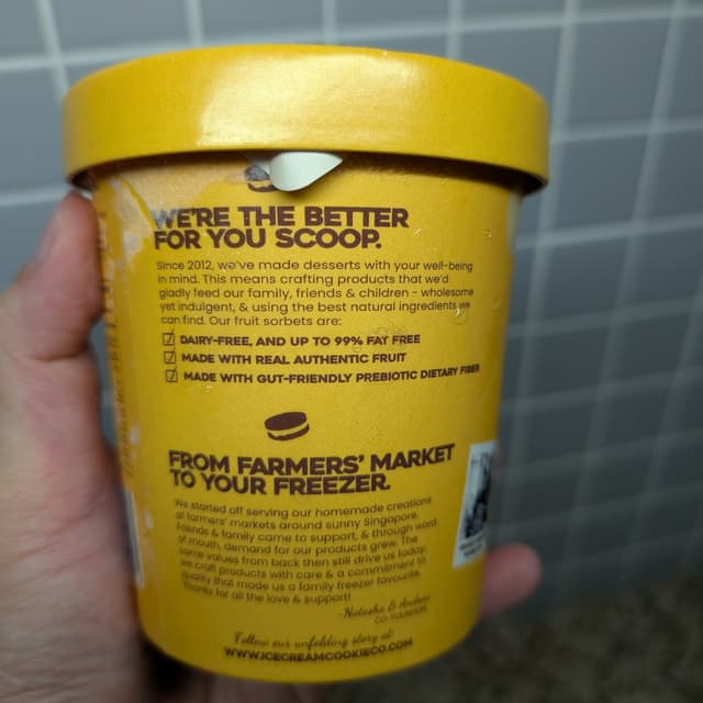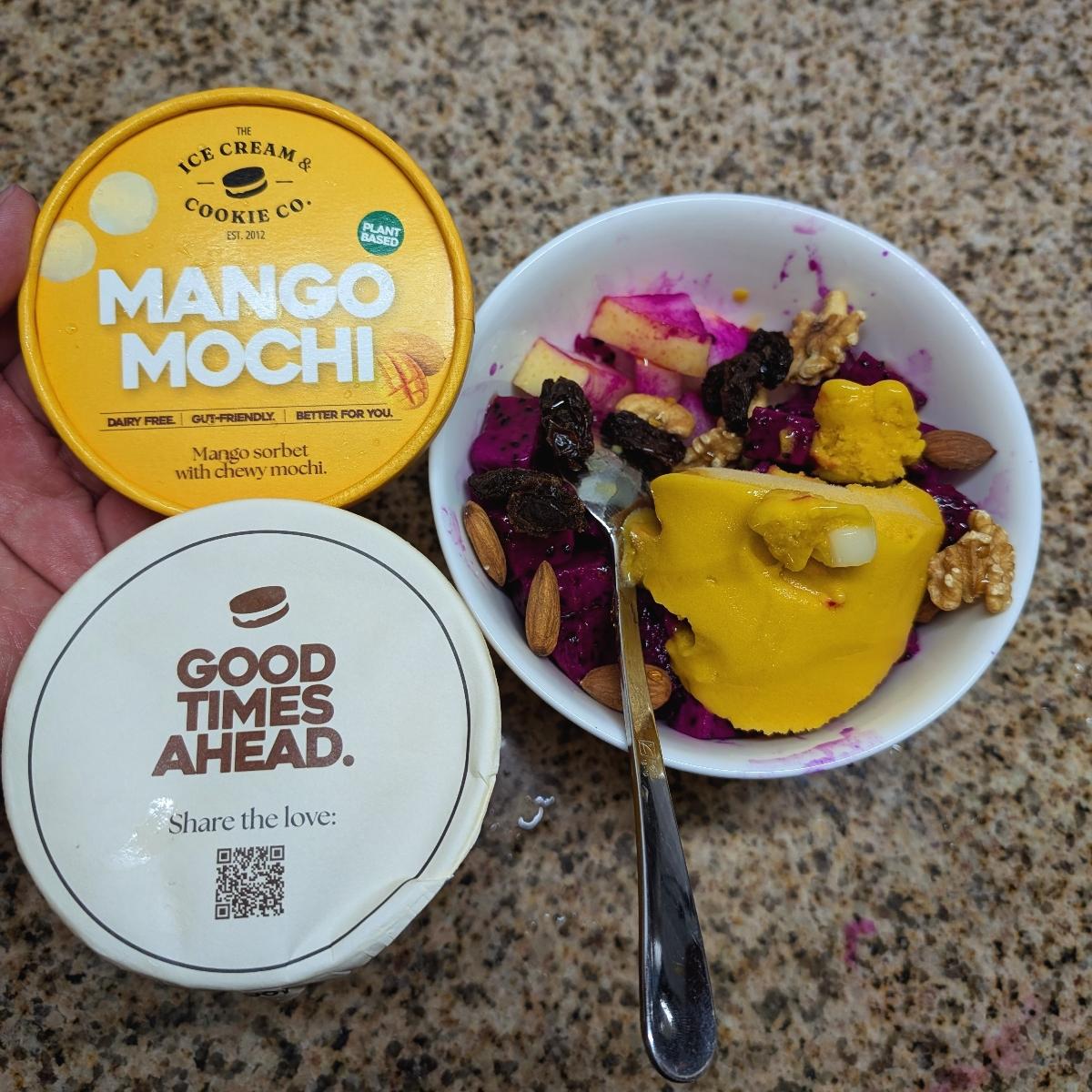 This brand makes fantastic sorbets! 😃 The only thing they don't know how to make is cookies - shame about their brand name now 🙃 The mango was full-bodied, #sweettooth friendly, and positively joyful; the mochi was small enough that it didn't become cumbersome, and contributed positively to the experience. As usual I had my #icecream with dragonfruit, which is like the best (and 100% natural) form of jelly in the world 😋