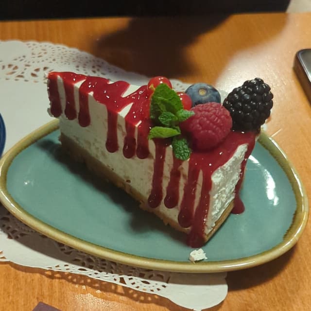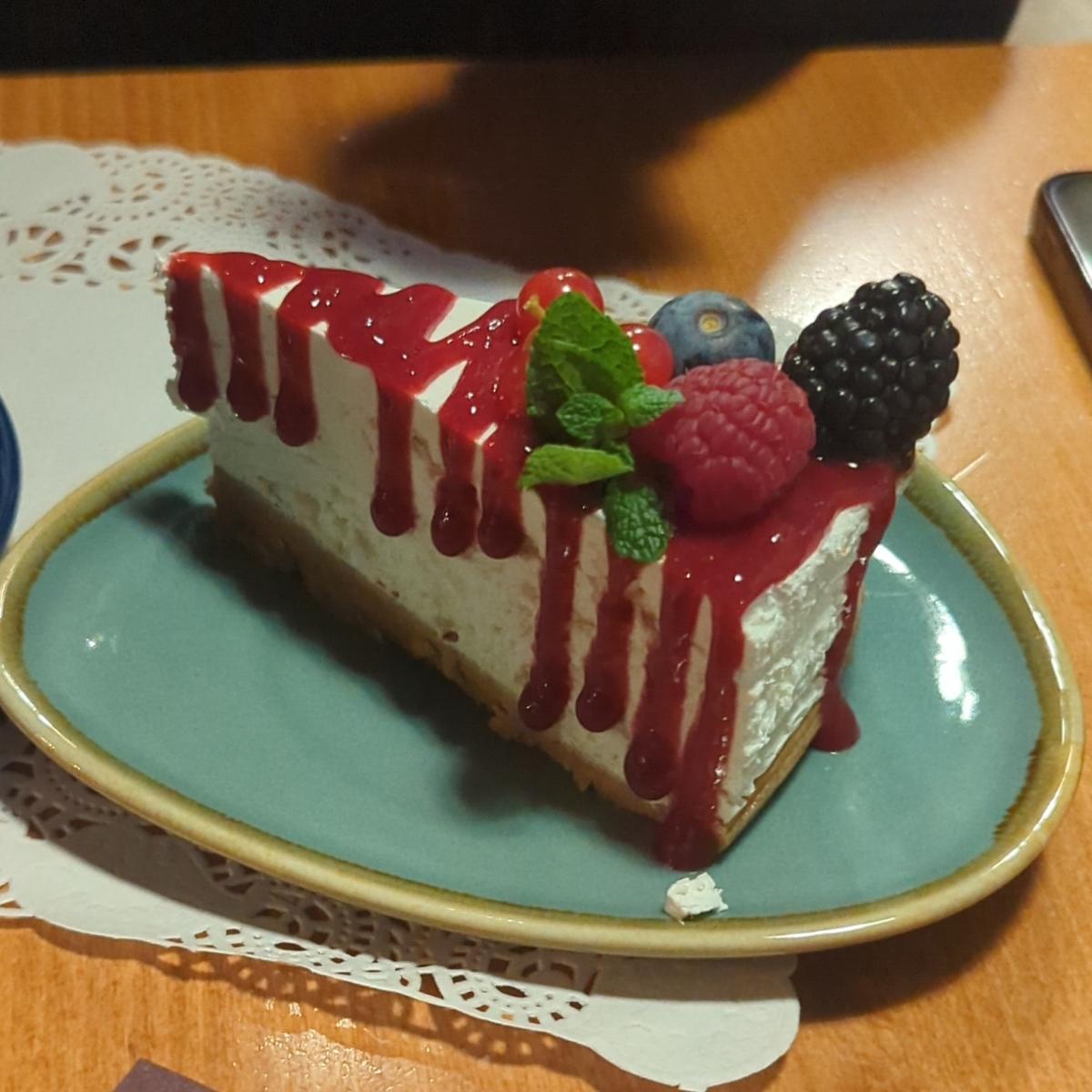 Cheesecake vegana spaziale, leggerissima ma con una consistenza perfetta, non troppo dolce ma ben guarnita. Anche la porzione era soddisfacente.