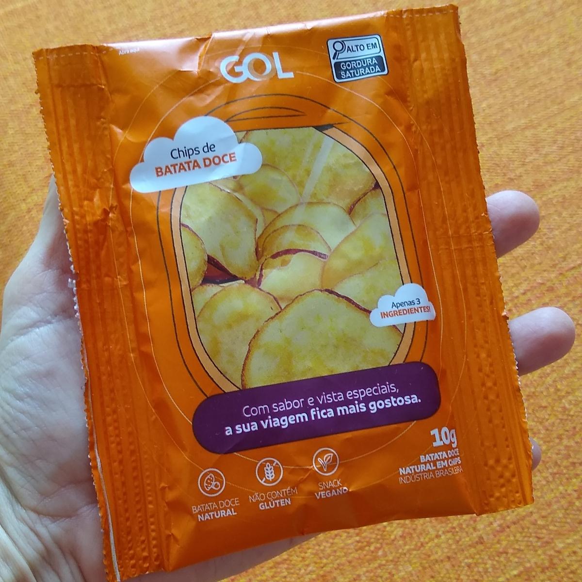 Chips feito com óleo de palma, infelizmente. O sabor é bom e fiquei feliz que a Gol nomeia como um snack vegano, tornando-se mais inclusiva.