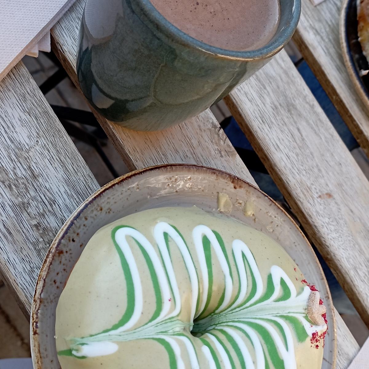 Me sorprendió mucho este donnut relleno de crema de plátano, superó mis expectativas y no me resultó demasiado empalagoso. Además era un pack navideño que venía acompañado de chocolate caliente.