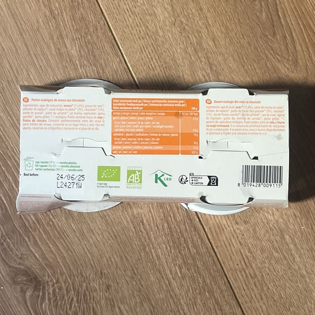 Un buon dessert al cioccolato. Ottima l'idea dell'avena (secondo me meglio della soia per i dolci, come sapore) ma forse si può lavorare ancora un pochino per perfezionare il sapore. Lista ingredienti breve. Lo ricomprerei.