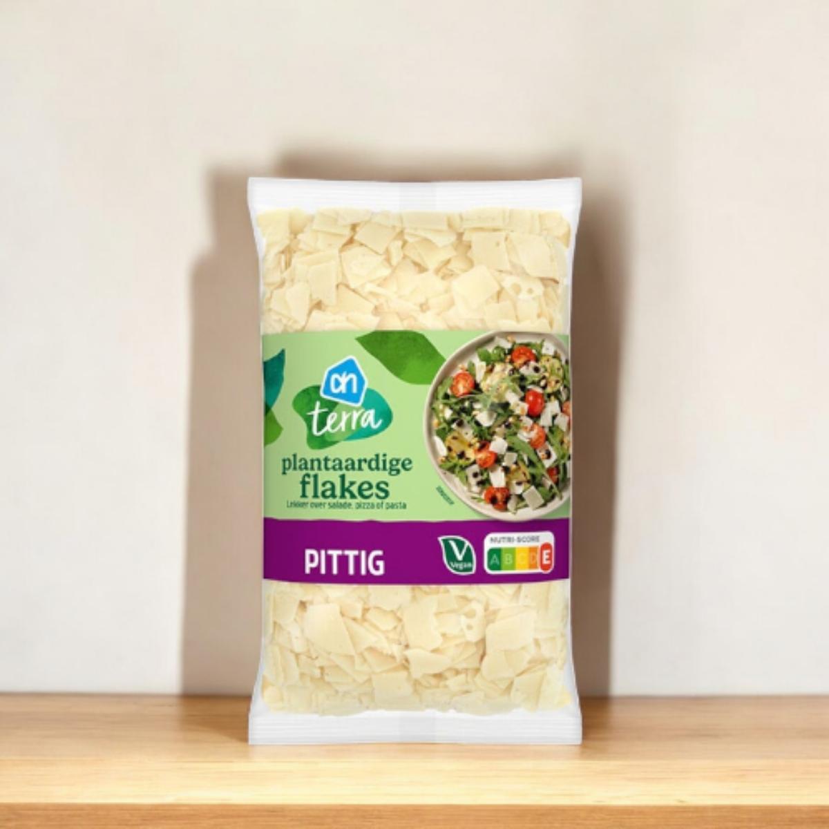 Great Vegan Cheese Flakes, for your salad, pizza, pasta i.e. This vegan cheese has a great spicy taste.