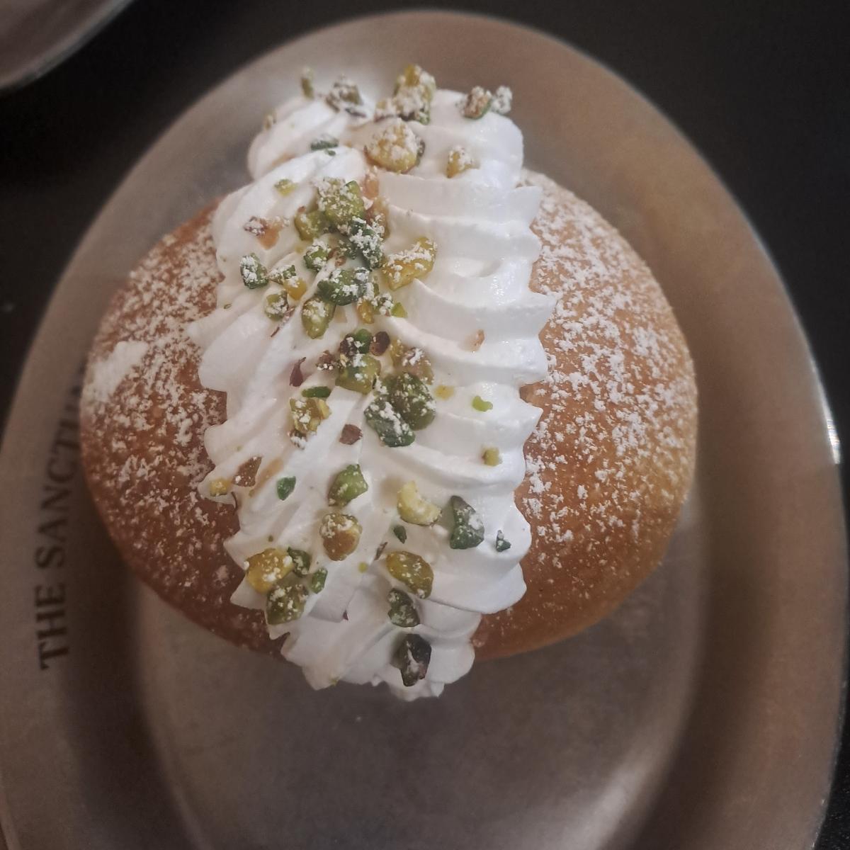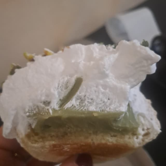 Delicious vegan maritozzo filled with whipped cream and pistachio cream. It was tasteful and well balanced in its sweet flavours. The dough wasn't dry but alright yoyo