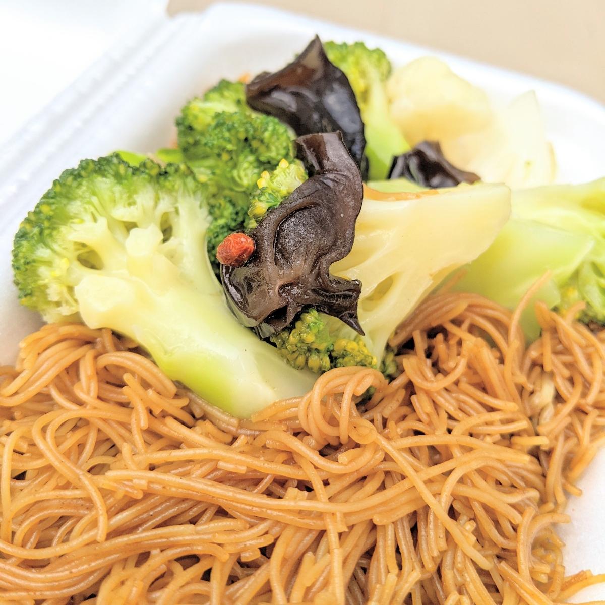 We came by at an unearthly hour of 3pm after lunchtime, so the stall had run out of most dishes including the daily lunch special of vegetarian chicken rice. Kid wanted the stir-fried rice vermicelli and broccoli. Both were just so-so.