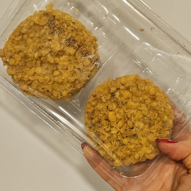Burger a base di lenticchie e spinaci impanati nei fiocchi di mais. La panatura croccante è molto sfiziosa e il gusto è davvero ottimo. Mi sono piaciuti molto. La confezione è da 160gr e contiene 2 porzioni cioè 2 burger. Valori nutrizionali niente male. Li ho adorati!!!
