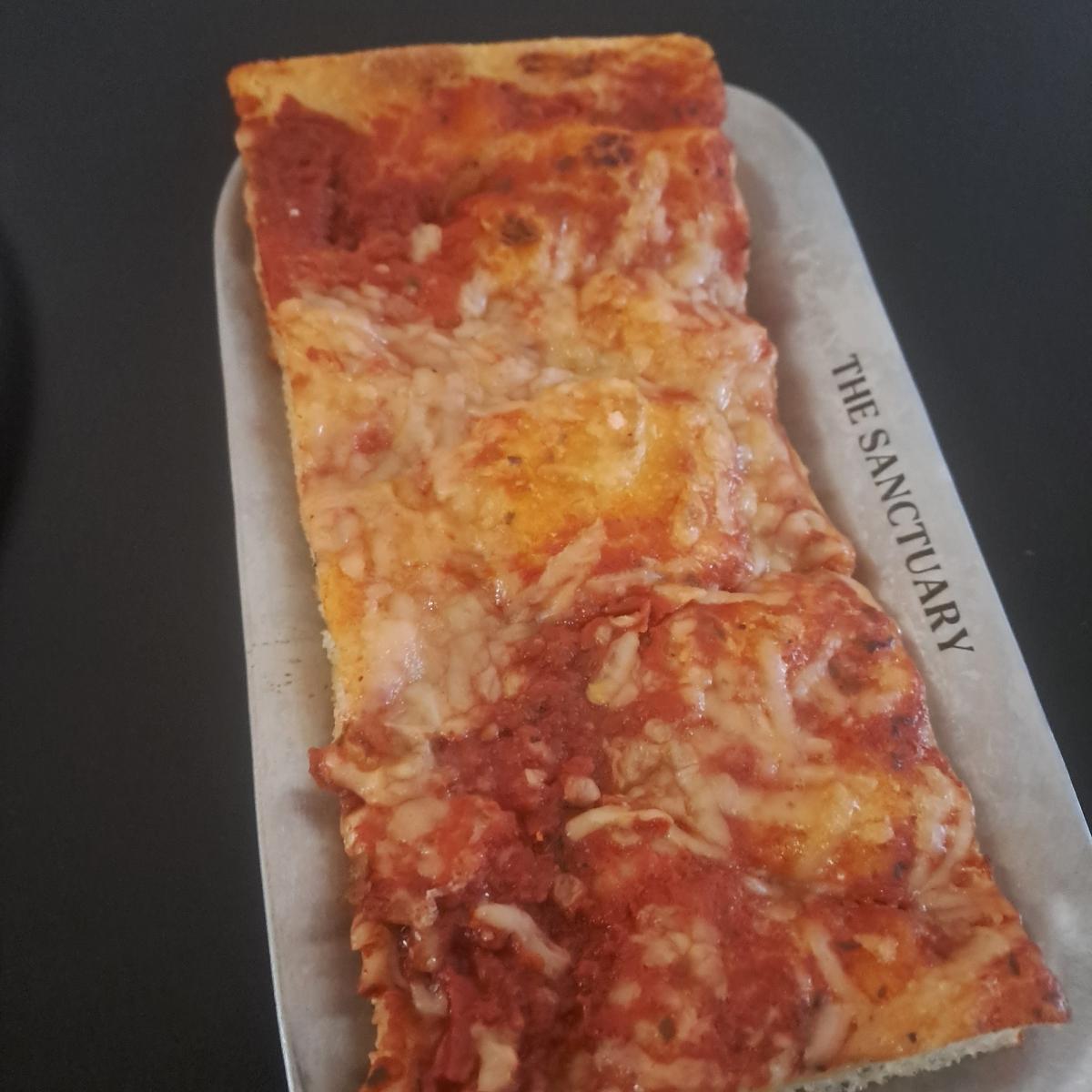 This sort of pizza by the slice was really good! The mozzarella and tomato were both delicious. I would have preferred if they had warmed it up, but I still enjoyed it. My rating: 8/10