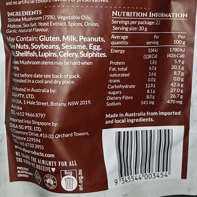 Whole umami and superbly crunchy shiitake mushrooms 😍 Has added sugar/maltose which works nicely amongst the savoury flavours! High fibre snack too - 8.0g per serving #shiitake #mushroom #snack