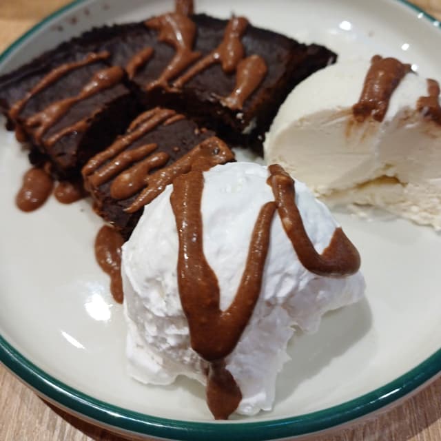 Mi piaceva l'idea che avesse tra gli ingredienti l'avocado e i fagioli neri ma era un pó secchino e non molto cioccolatoso. Non era male però il gelato alla vaniglia che avevo provato con l'Apple Pie e mi era sembrato un pó acquoso e poco saporito. É migliorato!!