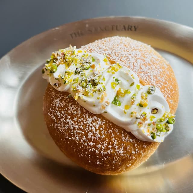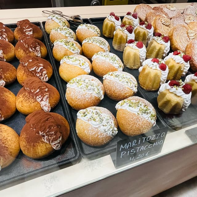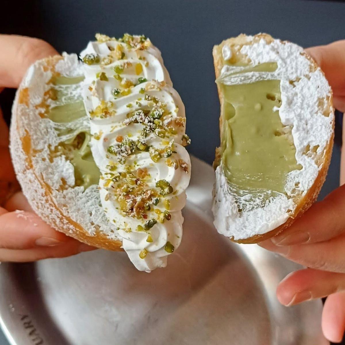 In ogni modo #maritozzo stratosferico, pasta leggera e farcito di buonissima crema al pistacchio più #panna e granola di #pistacchio nella parte esterna 😋