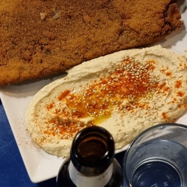 Piatto combinato con scaloppina impanata di seitan, patate e hummus. È un piatto adatto ad essere condiviso per i miei gusti in quanto il seitan era molto saporito e dopo un po' risultava troppo, ma mangiarne un bel pezzo con un po' di patate risulta assolutamente piacevole. Purtroppo l'hummus non mi è piaciuto, sapore troppo forte per i miei gusti