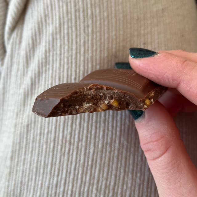 A yummy gift that a friend brought me from Switzerland, very sweet #chocolate (the first ingredient is #sugar, so 1 star⭐️ in nutrition), with bits of #popcorn 🍿and #almonds that make it crunchy.