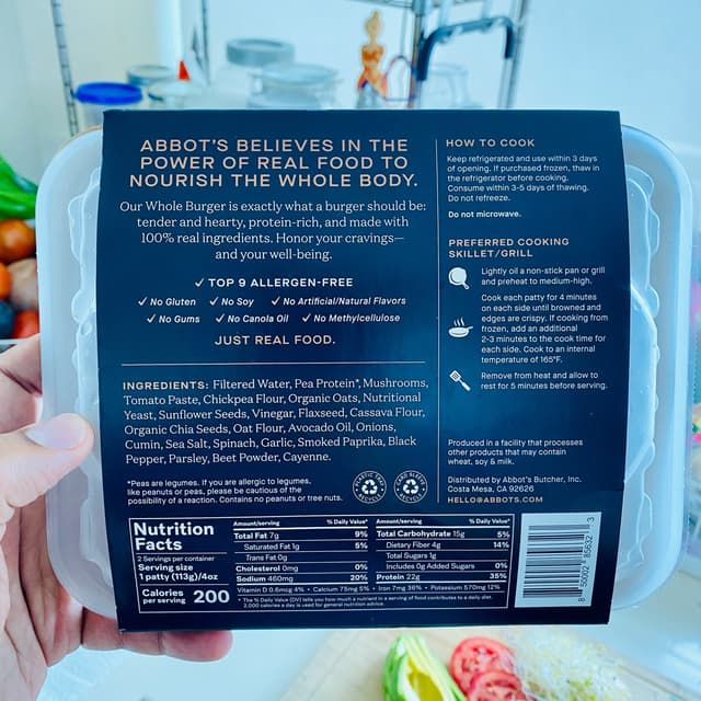 And best part, it tastes great! Firstly, the size is just perfect, not like the super thin veggie burgers from Amy’s or Dr. Praegers, this was at least 2x the size. And it was full of veggies and herbs and spices and a whopping 22 grams of protein for just 200 calories. And oil is not a main ingredient, like you’ll see in Impossible or Beyond.