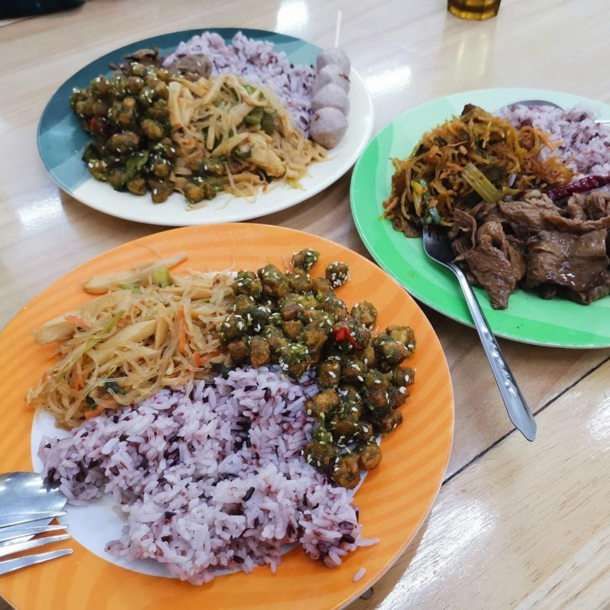 So many dishes to choose from with a large serving of brown rice. I got the fried round things thinking they were chickpeas. Unfortunately they were not they were sweet and very spicy, had a hard time finishing them. Otherwise, the meal was very enjoyable with a generous portion. I am impressed by the dishes in Thailand as each dish is cooked with many ingredients making it nutritious and fulfilling. I really enjoy stir fried bamboo shoots, they taste good and are crunchy. This restaurant is open for dinner, while most vegetarian restaurants in this area are open for breakfast and lunch.