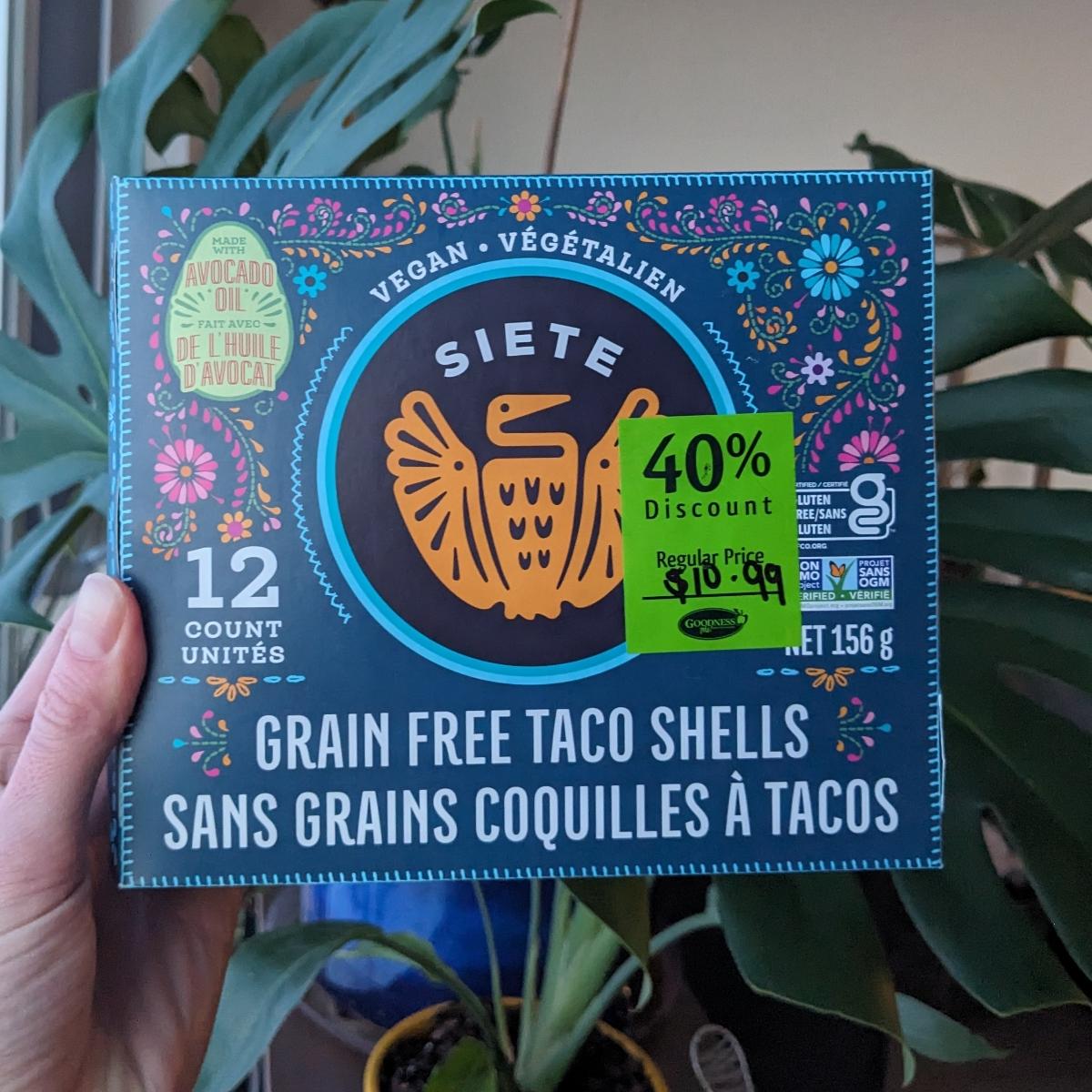 I wouldn't buy these full price at $11, but at 40% off I'd say they are worth it. They have a really good flavour and crunchy but also melt in your mouth texture. They crumble too easily to make tacos with them alone, but they are perfect wrapped in a soft flour or corn tortilla! #tacoshells #crunchytacos #hardtaco #grainfree #glutenfree #cassava #avocadooil #veganuary