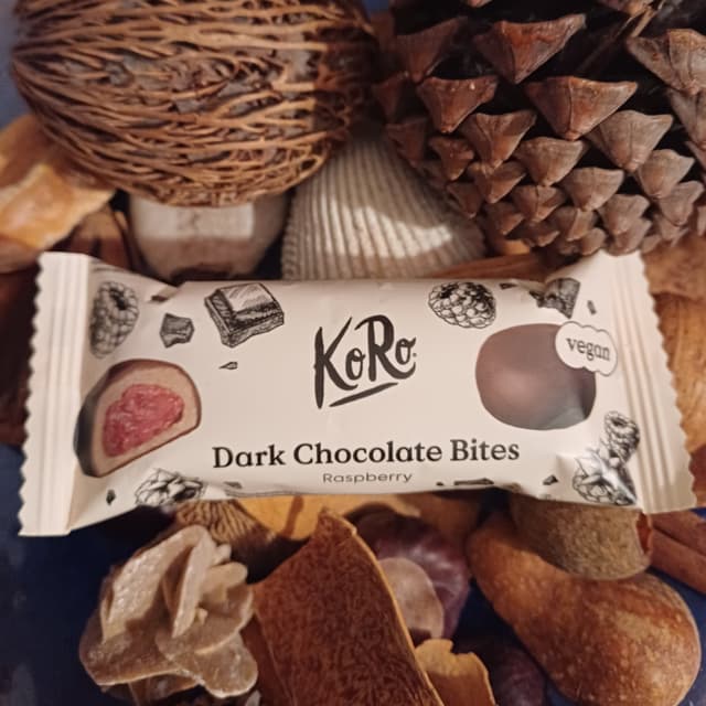 Nella confezione ci sono 2 palline di cioccolato ripiene di una gelatina di lampone che sa un pó di caramella. Questo è il gusto predominante dello snack mentre io avrei preferito sentire un sapore deciso di cioccolato dark.