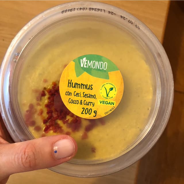 Humus con curry, cocco e sesamo, buono come tutti quelli della lidl 🤤 che secondo me sono davvero i migliori (di gusto) fra quelli confezionati.