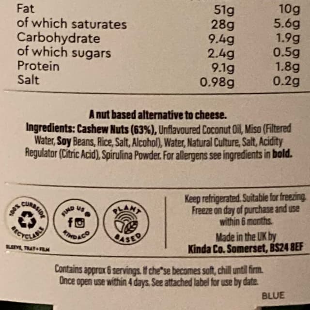 Smooth texture and almost refreshing flavour! I’ve never had non-vegan blue cheese but I liked this one. It’s strong but not too much, balances with other foods well.