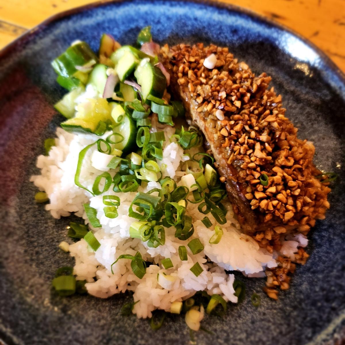 Muito bom!!! Tempero estava ótimo. Acompanhamento de arroz e pepino