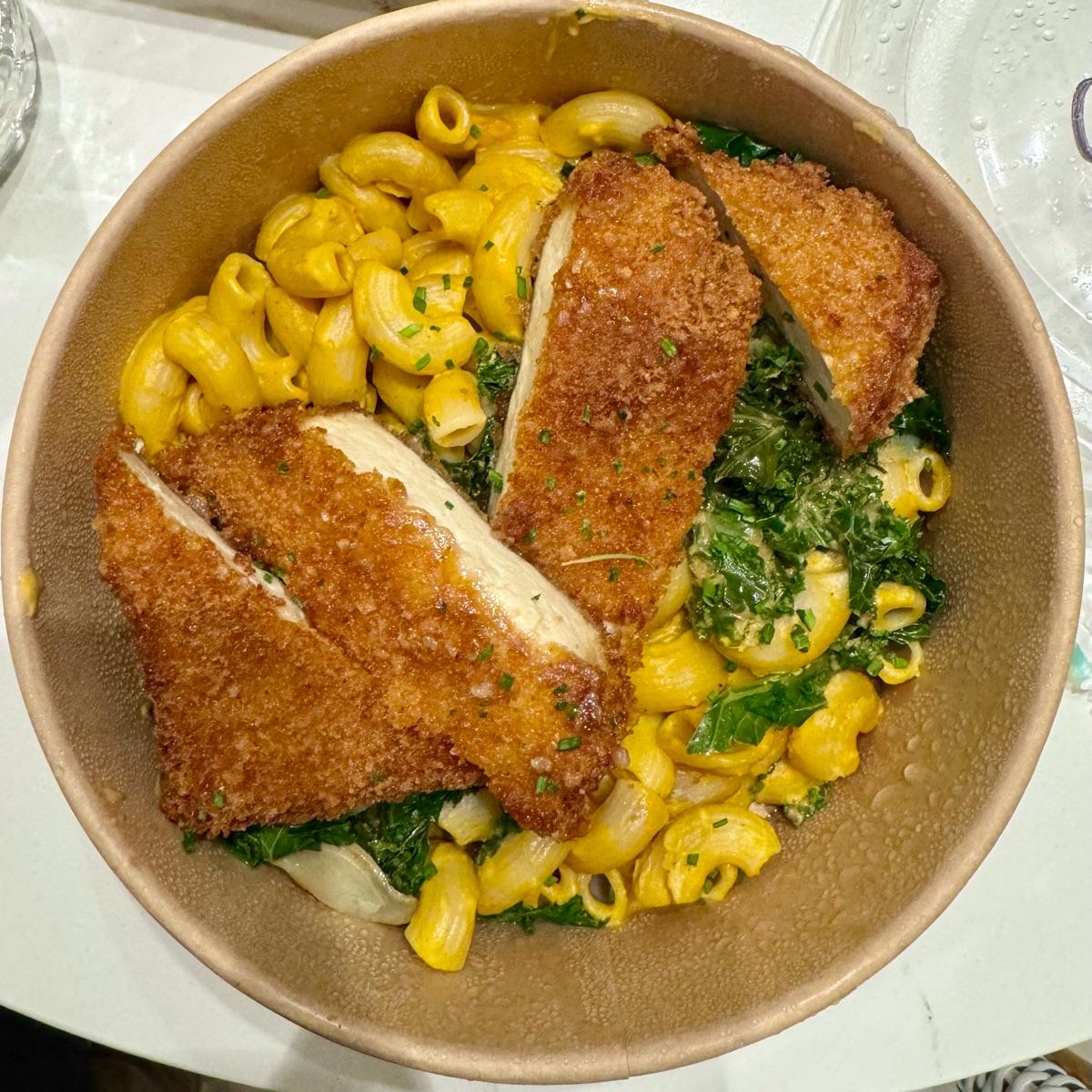 I love this đź’Ż plant based restaurant. This dish was a classic Mac n cheese with crunchy tofu and garlicky kale. It was a nice sized portion and very very good . The only down side is the $25.00 price tag. This was a bit steep , but I was very satisfied when I finished eating this so it was worth it