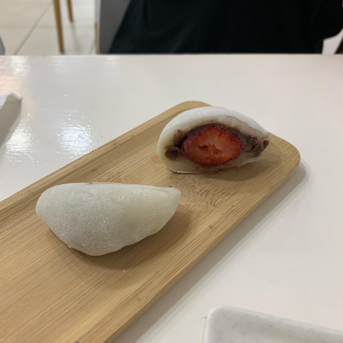 Es distinto al mochi común porque lo rellenan con una frambuesa. Me pareció muy rico! Y bieeeeeen distinto en cuanto a textura a la pastelería occidental a la que estoy acostumbrada. El precio por el tamaño quizás lo encuentro un poco elevado. $ 3.500 Ene-25.
