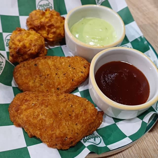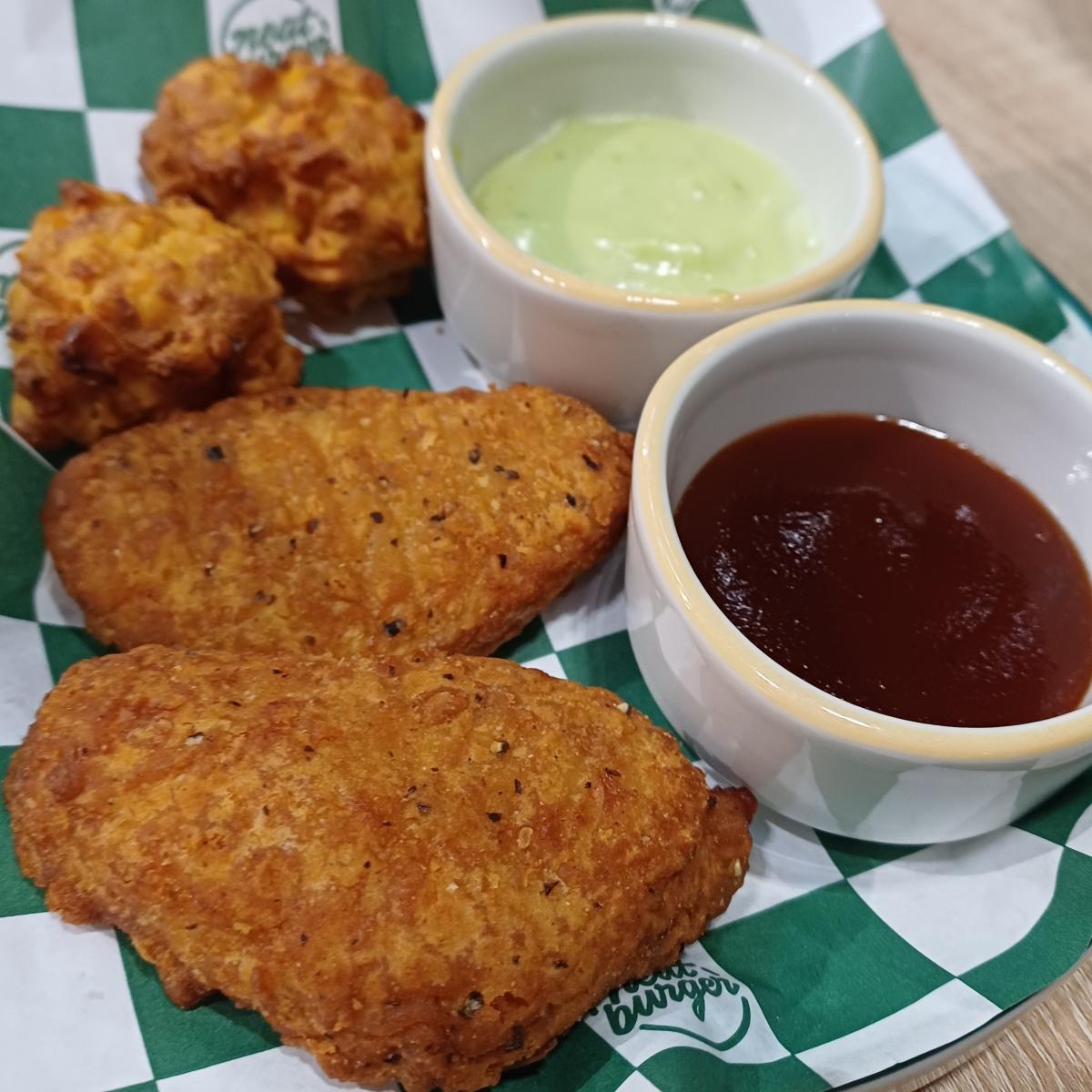 Bocconcini di pollo veg di marca TINDLE con una buona panatura, buona consistenza e caldi di frittura.