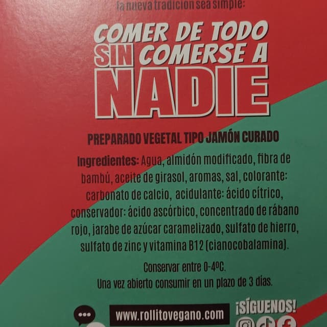 Rollito vegano es una de las marcas preferidas en casa,para tema de embutidos vegetales y paté.Este jamón vegetal está buenísimo,con pa & tomàquet queda impresionante.Creo que ya hice review hace tiempo,con el primer formato que sacaron de este producto,que era ligeramente diferente,y yo creo que era algo mejor.Pero bueno,sigue siendo de 10 !