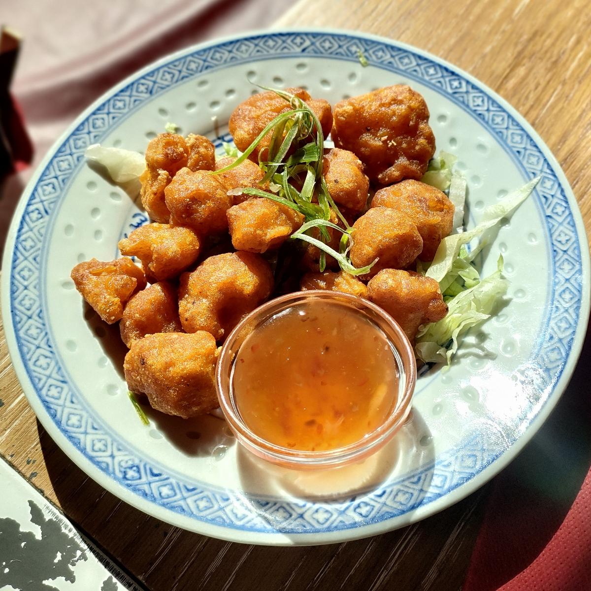 Nugget di cavolfiore,buoni,ma non li ho trovati indimenticabili.#vegantapas #nuggetsdicavolfiore #vegannuggets