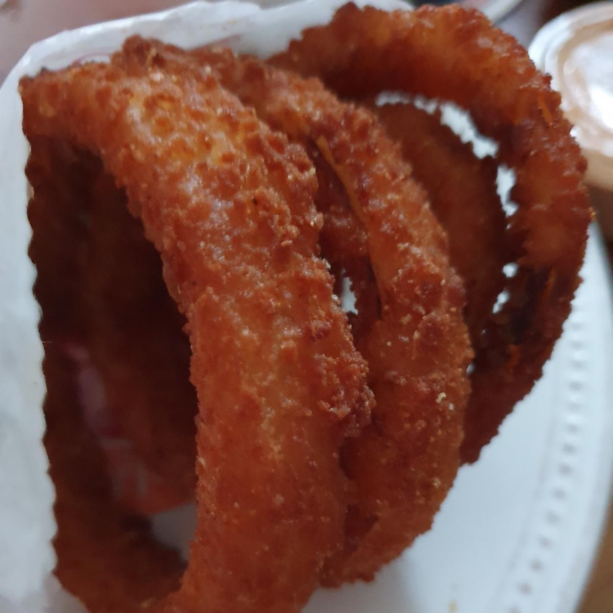 @paniwilson loves #onionrings and orders them any time he sees them on a menu! I'll admit, these were absolutely delicious. They might be the best #veganonionrings I've ever had. They are big and #crispy! They weren't at all soggy, like others I've had.