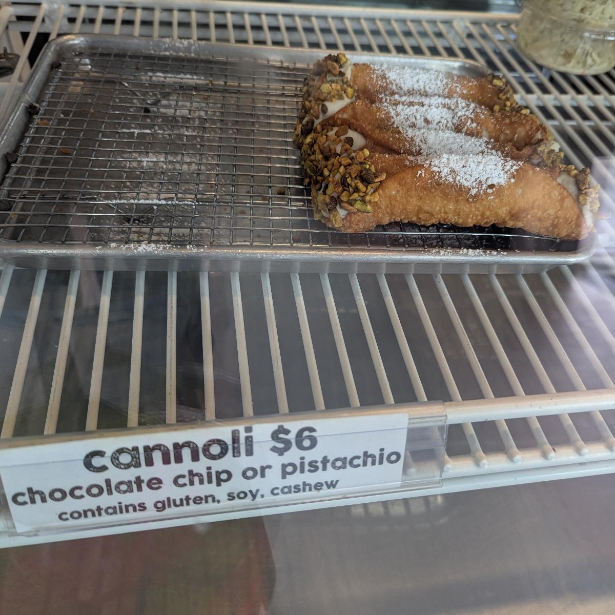 It's been years since I had a cannoli. When I passed by The Butcher's Son, a 100% vegan deli at 1954 University Ave. Berkeley, CA, I had to get one of their cannolis to try. It's better than the traditional cannoli because it's not as sugary and fatty. The shell was crunchy. It really hit the spot and brought back a lot of nostalgia memories such as my trip to Napoli decades ago. I had the pistachio cannoli (to go) and highly recommend it.