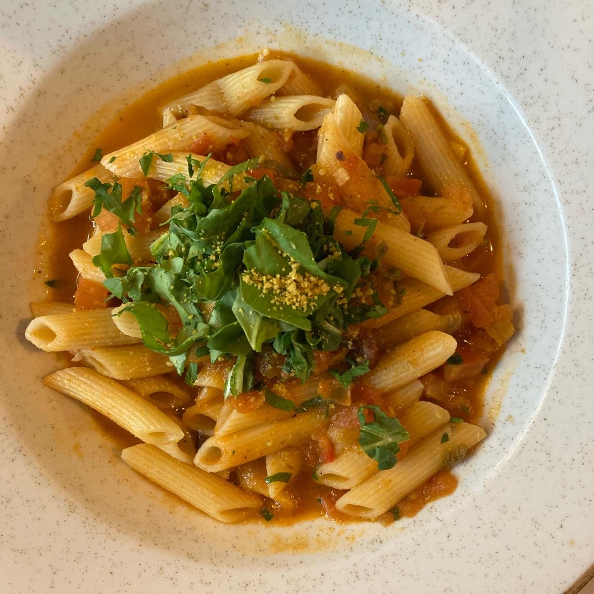 Ricas pastas veganas en un restaurante de Bogotá que no había visitado antes, pero me faltó el parmesano vegano para acompañar.