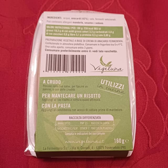 Per contro é fatto di soli 3 ingredienti (anacardi, sale e fermenti selezionati) e si guadagna un punteggio Yuka di 90/100.