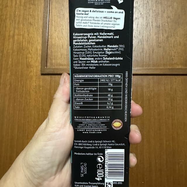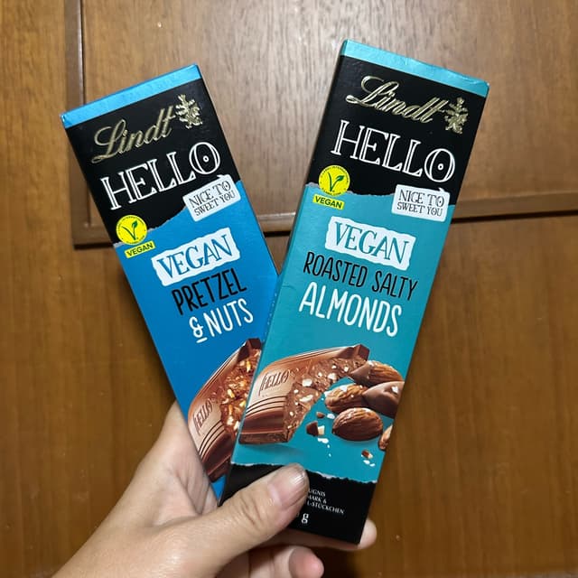 Lindt Hello Vegan Roasted Salted Almonds tasted smooth, creamy and not too sweet! Love the roasted salted almonds, nutty, slightly smoky taste. Super delicious.