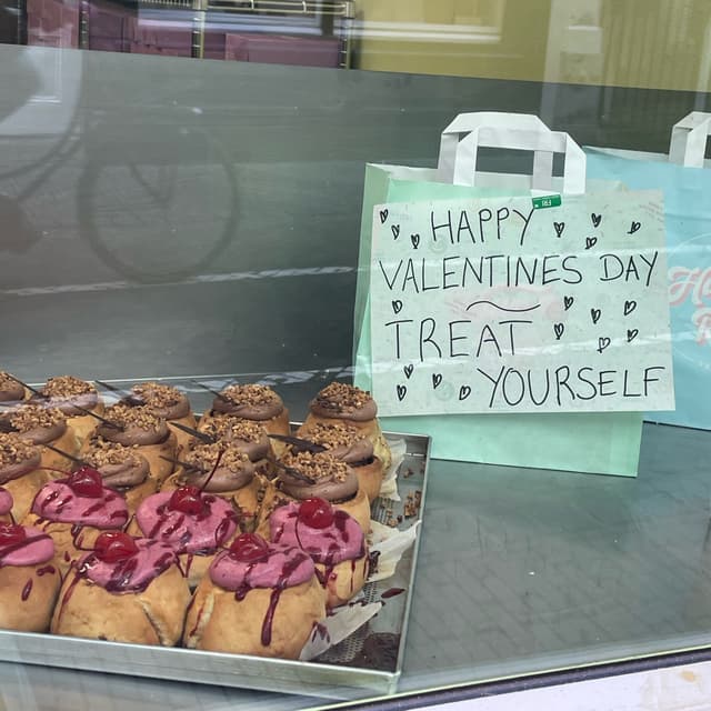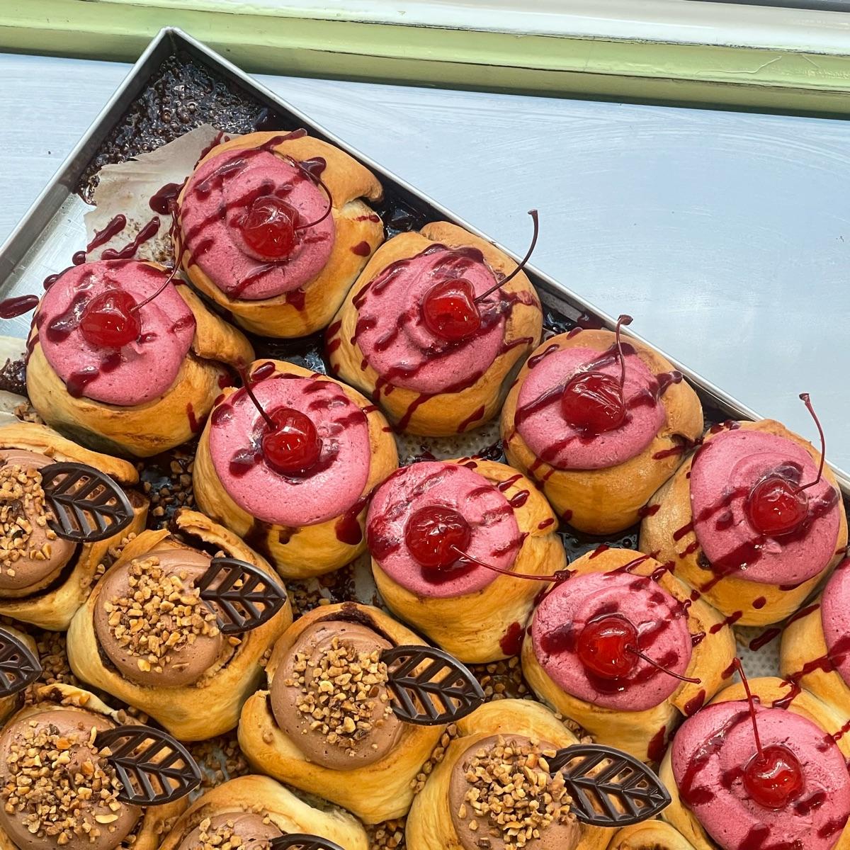 Happy Valentine’s Day ❤️ #valentinesday This was our special of the day: Kiss my Cherry 🍒 With a red fruit frosting, red berry coulis and a maraschino cherry on top! It was so refreshing, a bit sour from the berries and such a great balance for the cinnamon bun below! #sweettooth #cinnamon #havearoll #cinnamonrolls #berrylover #droolworthy