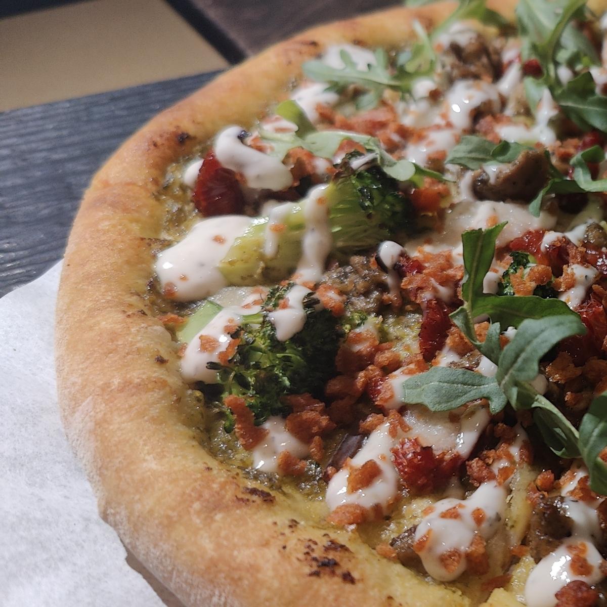 The combinations of toppings is great on this pizza and the generous addition of garlic ranch to the top elevates it.