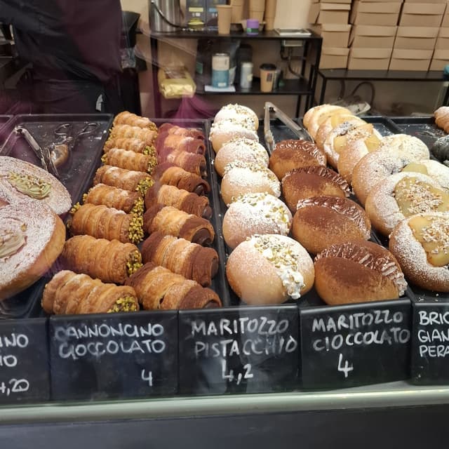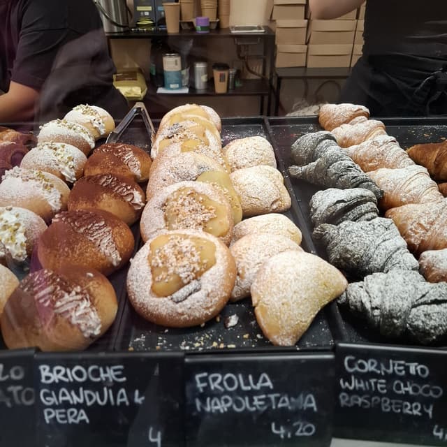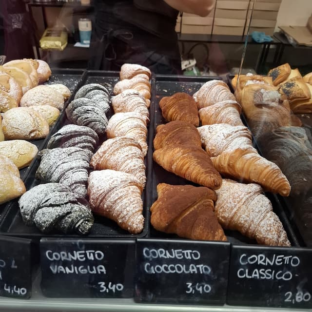 Comincio con una nota negativa: apre troppo tardi per una early bird come me 🫠 alle 9.30 (10 alla domenica) per me può essere sllo l'ora della seconda colazione, a quel punto ho uno spazio nello stomaco limitato e purtroppo non ho potuto svuotare la vetrina dei dolci, uno più goloso dell'altro.