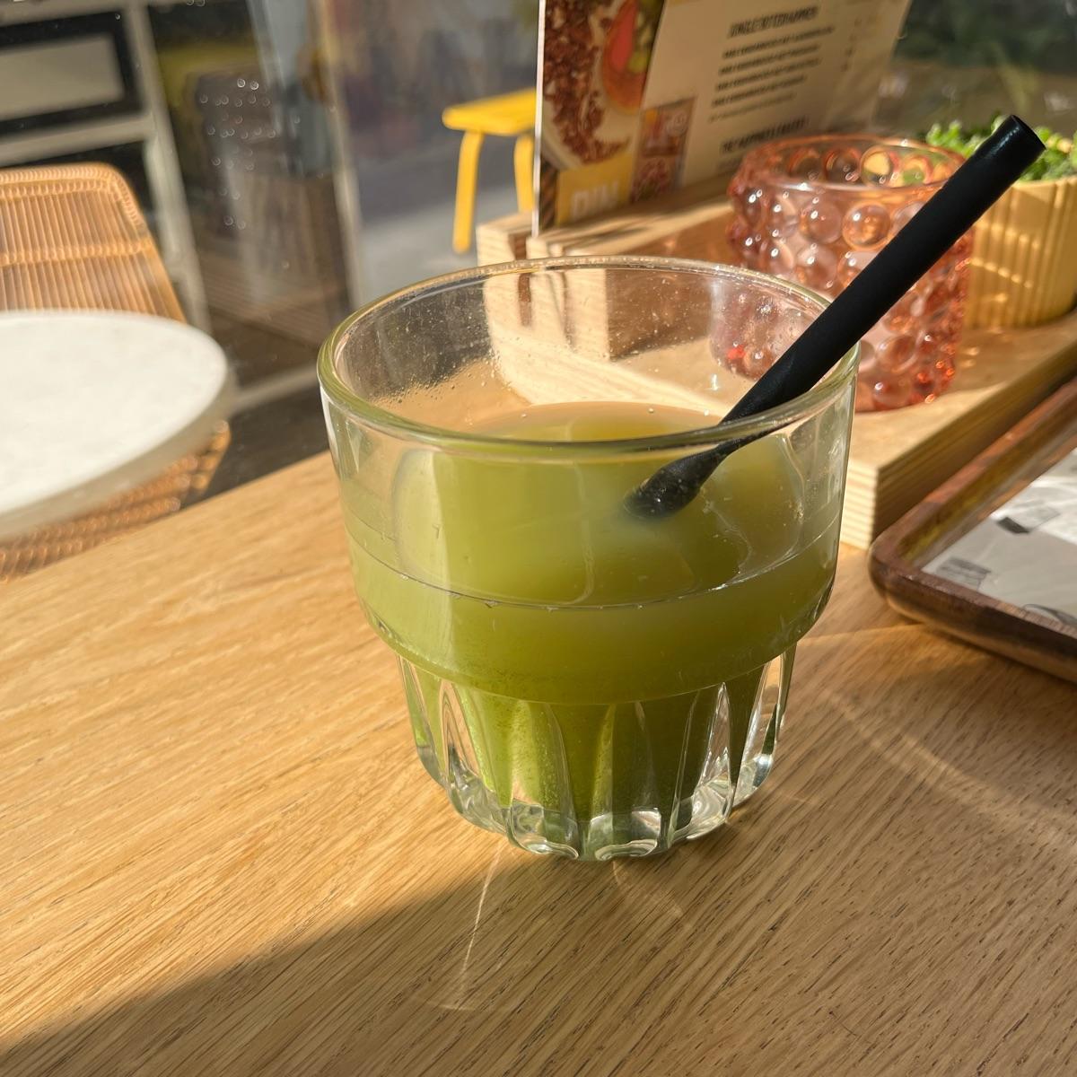 Nice and fresh. I definitely tasted the cucumber! Ingredients: cucumber, apple, celery, lemon & ginger