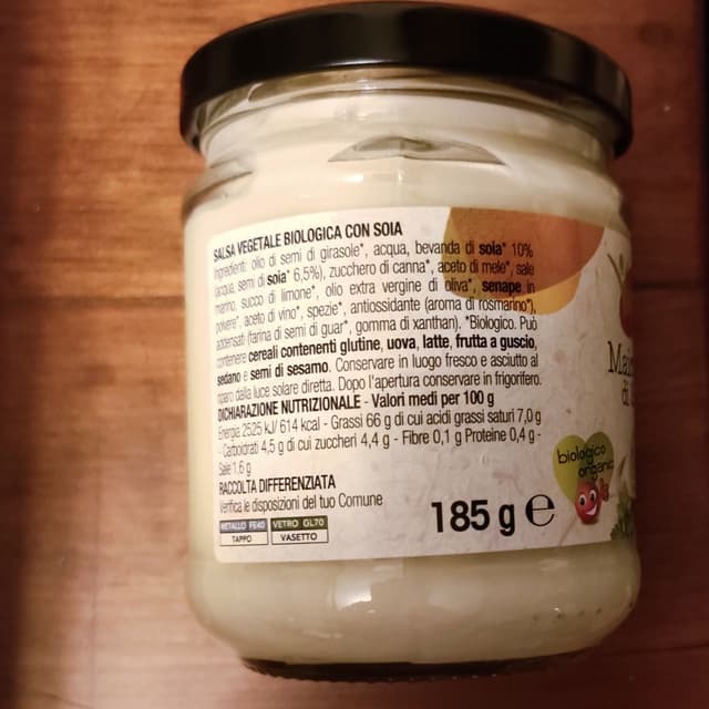 Maionese di soia buona, anche se la consistenza non è troppo cremosa.