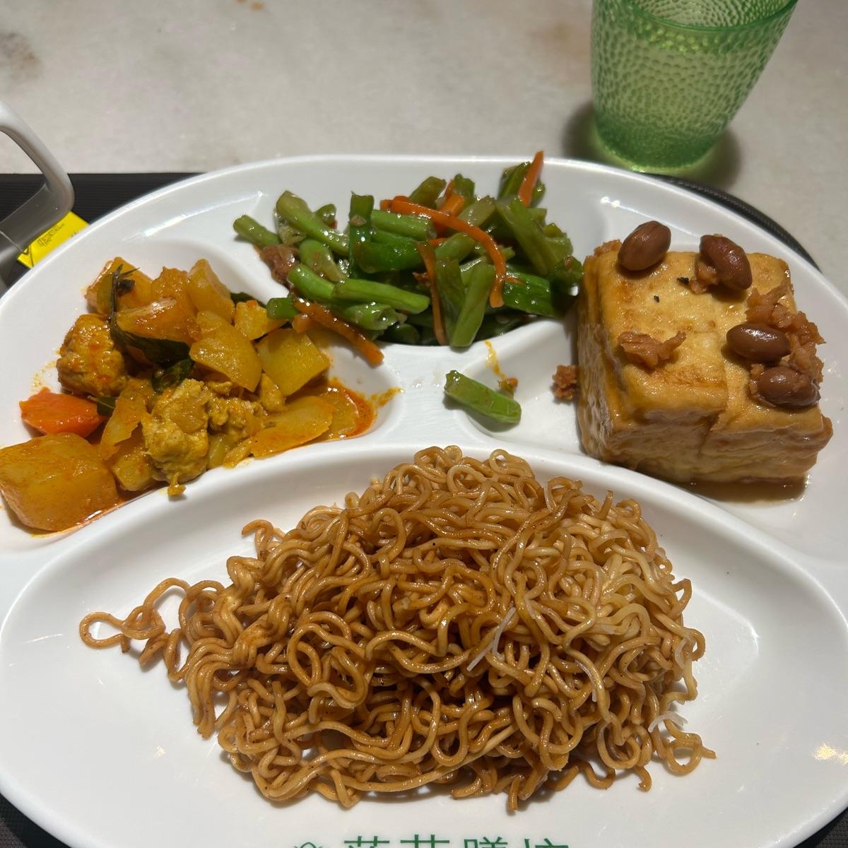 A hidden gem under the Buddha Tooth Relic Temple, this vegetarian restaurant serves pastries, breads, desserts, and meals from 7am! Perfect place to stop for breakfast, where I got a meal set of noodles with three sides. Each side was really delicious, especially the potato curry that had something that tasted very much like chicken. The green beans were also so yummy cooked in a delicious sweet soy sauce, and the tofu was topped with these softened soy beans and crunchy bits. Loved everything on the plate! Although the noodles are not super exciting, they’re more of a vehicle for the other ingredients. 4.50 SGD for this plate!