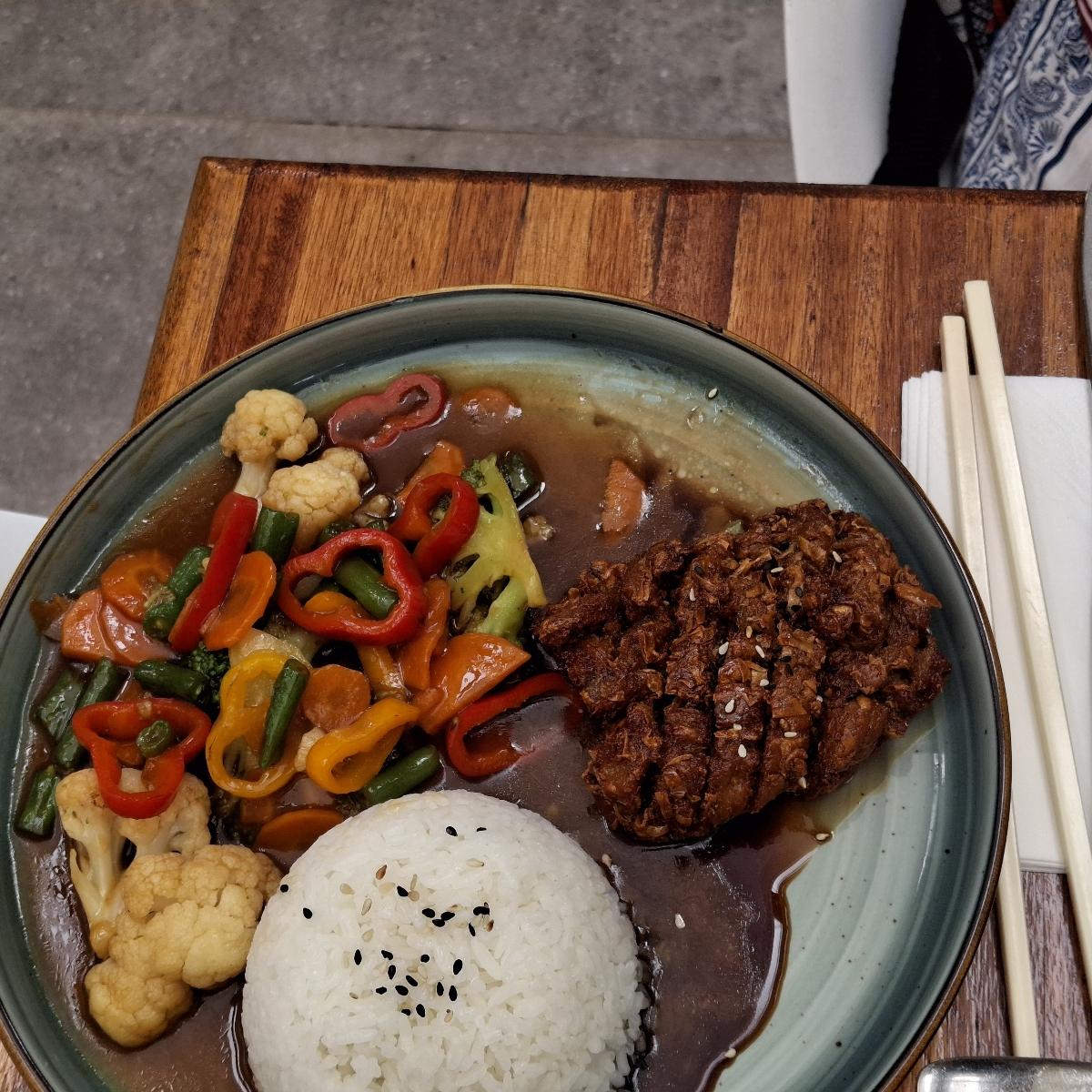 A tasty fish fillet with jasmine rice..has a bit of sea weed for that fishy feeling..