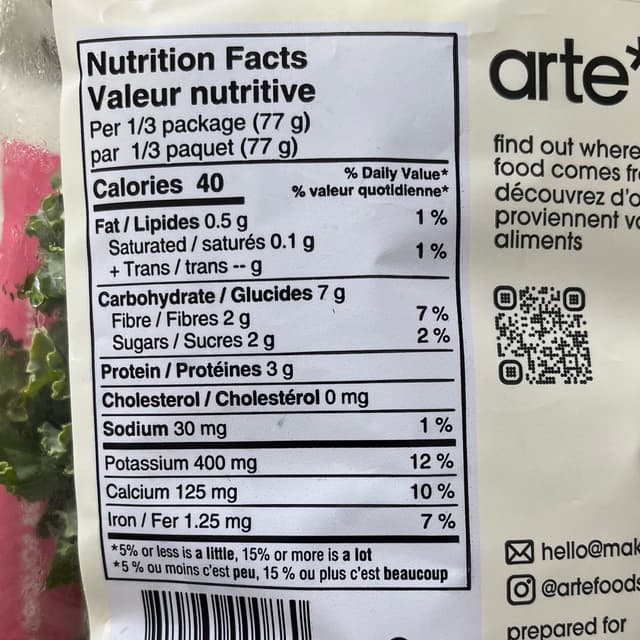 I had never seen kale packaged up by Arte. I also rarely buy kale partially because I don’t think of it when I shop and partially because when I do notice it, it’s expensive. But it is a green that I should buy more often simply because of its nutritional benefits.