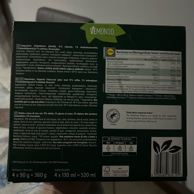 Buonissimo gelato vegano con cioccolato e caramello della Vemondo